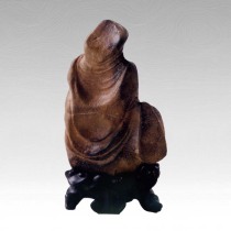 这是一件十分精到的雕塑作品,如果是某人做的,就该称他为大艺术家了。罗丹说:什么是雕塑,就是把多余的部分去掉。这块石头它要表现的是僧,布袋僧,它当然就可以省去石部分五官,只突出它的大肚,肚子沉得往下坠,只突出衣服,腊里腊沓的衣服折皱,但布袋僧的醉态或康慨劲微妙妙肖。 读石手稿