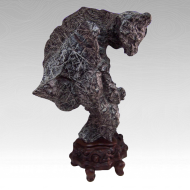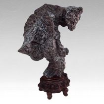 前些年,凤凰卫视台有个评论员常在电视里说话,他略有口吃,每次听他分析时政,说了上句,总担心下一句他说不出来了,但又说了出来,而且说得非常好。看到这块石头,那是只小狗呢还是什么小虎在球上或架子上表演,我就有了对那个评论员的感觉,担心它要失败了,掉下来了,但它并没有危险,仍在表演。 读石手稿