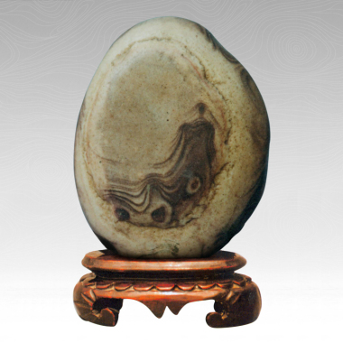 这块石头别的都平平,但石上的图案令我一下子就想到《洛神赋》。《洛神赋》是千古名篇,其凄美的故事,浪漫而绚丽的描写,让读过的人无不动容。而奇石竟重现洛河之上的风情,真令我惊叹又觉无限神秘。 石头的背面是黑色的,正面却灰白,是天阴着,还是暮时,恰是甄氏的心境。多么美丽的甄氏呀,从洛河上走过,红云与凤凰同舞,长发共衣袂飘曳,可怜可爱的人远逝,惆怅的是《洛神赋》的作者,也更是我们所有的人。 读石手稿