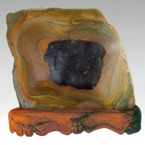 这块石头其实应该平面放,就可看出它是一块砚,砚中留有残墨。残墨是谁留下的?收藏者是江苏人,江苏历史上出个书画圣手郑板桥,石头的名子当然就是板桥遗墨了。 “一等人忠臣孝子,两件事读书耕田,”板桥属于一等人,他的残墨留下来,也留下了他的精神。 收藏古墨的人很多,许多古墨极其珍贵,但这块石头上墨可能“不可无一,不可有二”了。 读石手稿