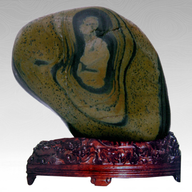 达摩石壁的故事几乎人人都知,许多画家更喜欢画这题材。我见过一些画,达摩都形容枯槁,又一脸庄严,觉得哪儿不对,达摩当然是高僧,但毕意也是人,他在石洞里静得悟禅是那个样子吗,不是那个样子又是什么样子呢?看到这块石头上的画面时,就更认同这个达摩了。 山壁是斑驳的,似乎长满了苔藓,这些苔藓四季变换颜色,如今成黑色,该是到了冬天。洞是一层一层黑线勾勒,视觉上达到了洞的深幽。达摩咒,盘脚搭手,光头漆目,一脸虔诚而又平和。佛教是心的科学,它是一直要作转化,即把种籽转化为大树,把茧转化为蝶。这个达摩不张扬,不做作,平常而不萎琐,孤寂又面部丰润,他应该是莫正的悟道者。 读石手稿