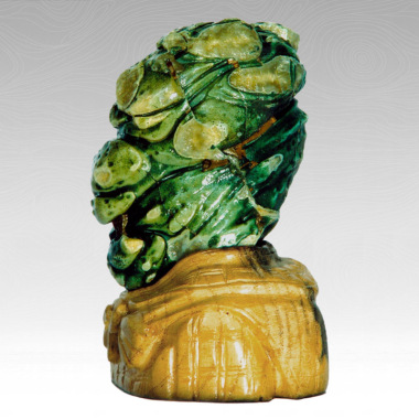 这个脸真花。 花脸的都丑,但往往丑能避邪。 中国戏剧里,人物都是把油彩涂在脸上,所以形成了脸谱。这个石人的脸谱是最夸张,色彩最为丰富的一个。只是我们不知道它演动了一出什么戏,是《刺秦》里的荆柯,还是《夜巡》中的钟馗? 一块使人想到历史和传说的石头,一块滑稽得让人忍俊不禁的石头,一块难得的奇石。 读石手稿
