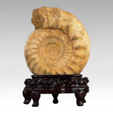 菊石,软体动物门头足纲的一个亚纲。菊石不是现生动物而是已绝灭的海生无脊椎动物,生存于泥盆纪至白垩纪。它最早出现在古生代泥盆纪初期(距今约4亿年),繁盛于中生代(距今约2.25亿年),广泛分布于世界各地的三叠纪海洋中,白垩纪末期(距今约6500万年)绝迹。菊石通常分为9目约80个超科,约280个科和约 2000个属,以及许多种和亚种等,鹦鹉螺与它是近亲。 产品特点