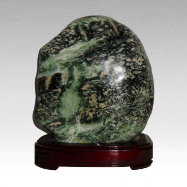 祁连玉,古色古香,璞玉浑金,美不胜收,是玉中佳品,深受赏石爱好者的青睐。祁连玉有“四美”: 一是“形美”。造型独特,形态万千,体量从几十克到几吨者乃至数百吨重,更多为籽料和山水料,有的小巧玲珑,晶莹剔透;有的浑厚大气,敦实稳重。 二是“质美”。结构致密、质地细腻,硬度一般为4-7度,其雕制品细腻、滋润,光泽度好,遇水则神韵更佳,有较高的工艺欣赏和经济价值。 三是“色美”。色彩以绿为主,古朴典雅、自然和谐,有浅绿、翠绿、墨绿,白色为过渡色,另有少量黄色、红色玉石,半透明,带有均匀的黑色斑点;层次分明,不事雕琢,美轮美奂、多姿多彩。 四是“纹美”。祁连彩玉纹理变幻无穷,色彩相互交融,构成精美绝伦的图案意境,再现世间万物之神奇,纷呈大千世界之灵韵,或酷似人物肖像,或构建自然风光,或再现山水花鸟,或表现生灵百态,意境万千,栩栩如生,耐人回味的天然艺术之美,天地之造化、自然之神奇,令人叹为观止。 历史渊源