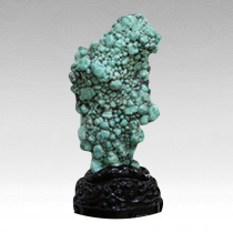 这件《献瑞》收藏品,产自湖北十堰,石种为绿松石。它沁人心扉的石色让人耳目一新,细腻爽手的石肤。外形独到地呈现出麒麟昂然的头部,劲力的颈脖,颗颗饱满的绿松石像是麒麟身上块状肌肉的身躯站立,它微微向前作揖,体态灵动,乖巧可爱让人看时甚是喜爱。这方美石的特别之处,即是它造型生动,寓意美好吉祥。 麒麟,是中国古代神话中的传统祥兽,传说能活两千年。古人认为,麒麟出没处,必有祥瑞。人们都把麒麟与青龙、白虎、朱雀、玄武并称五大祥兽。从古到今都是公堂上的装饰,以振官威之用,也是权贵的象征。 能够收藏一件精美绝伦而又寓意吉祥的奇石,也是上苍赐予我们的恩惠与福典! |