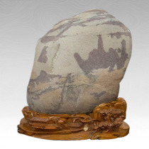 葱郁茂密的山谷里,一片树林,数行修竹,煞是茂盛,两座石碑静候在路旁,掩映在竹林中。 那弥漫着的、淡淡的晨雾把近处的山、树,都蒙上了一层半透明的轻纱。在烟岚云雾笼罩下的绿树丛中,似乎传来了咻咻喘气的驴声,声音越来越远。 透过缭绕的雾气,我们似乎可以看见一位头戴笠帽,身披斗篷的老者倒骑着一头驴远去。老者坐在驴上晃晃悠悠的,哼起乡间小调。 那只驴低垂着脑袋,不时摆动双耳,好像也只有他能懂得老人的笑声的意义了。 这方奇石,来自青海,属于黄河画面石。石质坚硬,具有独特的意境,每每看到,心生快意。此石现存于武汉天人合一奇石博物馆内,遇有客至,驻足观看,话题由此而生。黄河石画面石有很多,但是有这样意境的石头真的是很少有。 |