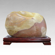 远处渐渐的,呈现出一些淡红色,它把云朵染成了玫瑰色,几片云朵围在太阳的身边如同贴身的侍卫一样。 朝霞慢慢向山边扩散,天色也被那柔和的红色映得淡了,淡了。天也亮了些,天边的缤纷却被一层灿烂的金黄所点缀,太阳慢慢地透过云霞,露出了早已胀得通红的脸庞,像一个害羞的小姑娘张望着大地,这是山与太阳的爱情故事! 此石产自青海,属于黄河画面石。简单的两笔勾勒出日出苍山的景象,极富美感!真是一块简洁、明快的精品!石头体型较大,但画面丰富,形状略有欠缺,但单单从寓意上看就更胜一筹了。 日出,表明了新的一天已经开始了,充满了朝气、充满了希望、充满了光明!日出给万物带来了无限生机与温暖。总之,藏于武汉天人合一奇石博物馆的这方大石头的也是极具收藏价值的。 |
