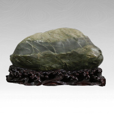 并不是所有的水冲石都可以形成姣好的姿态,以青灰为主调的这方奇石,虽然没有那般象形,可是“雪山春暖”的名字让它意境超然,更显朝气。