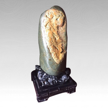 瓯江石,主要产于浙江省丽水市青田县瓯江。瓯江石的品类较多,质地有火山岩、石英、玛瑙、玉质等,品种有黄蜡石、彩陶质石、锦纹石、卵石等,有图纹石也有造型石,并以图纹石为主。瓯江图纹石质色较佳,纹路细腻流畅,线条曲折多变,形成似雪山初融、瀑流飞挂、山水树木、飞禽走兽等景物图案,妙趣天成,生动传神。造型石以黄蜡石、彩陶质石为主、形态圆润自然、色彩艳丽夺目、造型多端,有似山水、人物、动物等。 产品特点