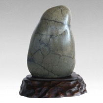 西瓜石,又称西瓜皮石,西瓜石外表具有球状变化之特,经海水长期浸洗润化,易形成绝佳的人物造形。以节流形状的形态显示,属不规则变化,色泽分青绿、紫、黄、红色等多种,以紫色为稀,青绿色居多。也有单双峰、叠峰及洞窟之景观石,还有特别表现纹理之美的无形石,外表大部分都是深绿色,而且有条纹,似小玉西瓜,但不很规则。肌理呈现光滑细致,突出如球状,及米粒斑点状三种风貌。通常用来配座观赏,或是当把玩石,触摸起来很有质感。 产品特点