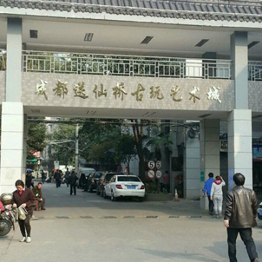 送仙桥古玩艺术城坐落在成都市区摸底河与浣花溪交汇处闻名遐迩的成都浣花文化风景区内,是中国西部最著名的书画古玩市场,成都花园城市水岸和绿道重要节点,与杜甫草堂、青羊宫、浣花公园和四川博物馆毗邻。”送仙桥“这个名字很雅致,相传是因吕洞宾下凡到青羊宫庙会观灯后,经此桥西去而得名。地址四川省成都市青羊区浣花北路22号至24号 艺术城有仿古的东大门和西大门,全方位开放式建筑,四方通透;分为A|B|C|D四个区域,其中,B区是原创油画国画集中区;各门类古玩和收藏交易门店穿插在各区。每个区都有三层楼 ,都有至少2个楼梯连接上下,区间互通。孟良书画院(国际美协名誉主席和中国将军诗书画院名誉院长的国礼书画名家工作室),众多文物鉴定机构、美术团体、艺术协会、收藏协会、文物装裱经销商店、文房四宝厂商,均已入驻该城。它又是国际旅游团队成都文博游览观摩选点。周边的浣花公园、杜甫草堂、四川博物院等与艺术城互相辉映,连片形成不可复制的中国传统历史文化的博览群体和百花园。 市场位置