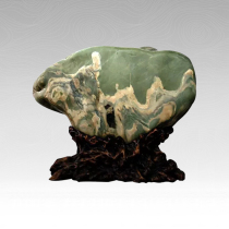 九龙璧,醇美温润如翡翠,碧彩清光、一色苍茫。石中肌理飞扬,将画面分割成两部分,上端如一望无际的大海,深邃辽阔。沿着海岸线,下端青山延绵,峰壑起伏,高山隆起的伟岸脊梁,横亘于海天之间。狂风袭来,白浪滔滔,猛烈撞击山脚下的海岩巨礁。高崖之巅,登山者的身影昂首挺立,大有“一览众山小”的气势。 这是上苍赐予的千古壁画,气势宏伟、意境壮扩,充满艺术感染力。目及之处,尽显“海纳百川,有容乃大”的非凡气度,更饱含“壁立千仞,无欲则刚”的品格写照。海洋和高山那朴拙、睿智、包容的伟大胸怀,让人领略到林则徐“海到尽头天作岸,山登绝顶我为峰”的豪情壮志。天、地、人和谐共处,博大与渺小之间对比产生的视觉震撼,令人叹为观止,豪情勃发。 名家简介