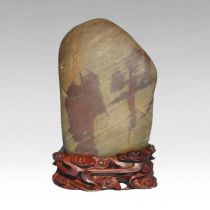 石头的左侧是一头威风凛凛的牦牛,形象逼真生动;右侧赫然呈现一个行书“牛”字,字体遒劲洒脱——太不可思议了!一枚奇石上,同时出现两个“牛”,一个是图,一个是字。左右对称,比例协调。“牛图牛字”依从了相似和自相似的形式美规律,牛的字义,字的牛形,形成自相似的审美效果,让人感叹大自然的鬼斧神工。