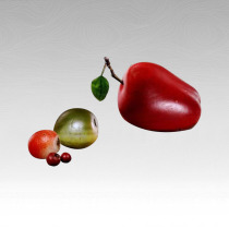 这组“瓜果”小品石组合给人的视觉冲击,就在于色与形的清新靓丽。那瓜果散点式的空间构成,就像从筐中倾倒而出般自然随意,而实际却是创作者的精心设计。 鲜红色、饱满的瓜体量☆,因而置于最后。紧靠着它的是居第二位的淡绿色的果。再前面,一直延伸到右边,几粒体量较小的鲜红色的小果疏疏落落地撒布着。在整体皆圆的形的统一之下,大小的对比、疏密的节奏、色彩的明暗,尽情地倾述着生命的礼赞、群体的和谐。 该组合的小品石单体都非常具象,创作者在布局时特别注意到如何发挥其精致之美的优势。你看那瓜和果表皮上色泽的晕变、纹理的隐现、蒂部的突显,都给人以乱真的感觉。 如果我们更仔细品读那些小果的朝向,就会发现这些小果无一相同,有的正置,有的斜倚,有的背对,有的仰视,有的俯察,令我们在感叹这些天生尤物无奇不有、由惊奇而惊喜的同时,也由衷地赞叹创作者的慎密与机巧。“天造奇石,人赋妙意”,这妙意不仅是通常所说的命题与赋文,还是最佳赏析效果的构成。小品组合时的“肢体”语言常常是文字语言所难以企及的,这就是“立象以尽意”的道理。而立象时细节的考究,正是雅石演示、小品组合的关键所在。 |