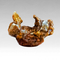戈壁石 gebi stone,顾名思义产于沙漠戈壁,材质优良,造型多样一般为半透明到不透明,硬度6.5-7,比重2.55至2.91,折光率1.535至1.539,其中被称为 宝石光 的是戈壁玉石的精品,是石英的隐晶质集合体(玉髓)。通常会含有微量或少量的其它矿物质,而导致五彩纷呈的颜色,而质纯时是无色。它们颜色漂亮,如红色,蜡黄,泥绿等美丽异常。这些都为玩石界所推崇。
