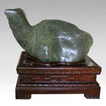 藏玉,顾名思议即产于西藏的墨绿玉,在民间素有“药王石”的美称。在珠宝学著作里边,墨绿玉的规范名称为:蛇纹石玉。蛇纹石玉多以产地命名,诸如广东南方玉、辽宁岫玉、台湾的台湾玉等,都与她同一家族。因此,墨绿玉亦称“西峡碧玉”,而近几年在雅鲁藏布江流域附近发现的藏玉,被一些专家认定为质量优良的墨绿玉。