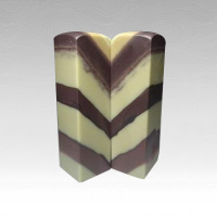 七彩玉带石,出自湖北省襄樊市境内老河口市、谷城县、樊城区、襄城区一带的汉江河床中。七彩玉带石由多种不同成份的矿物质相互渗透构成,在漫长的岁月里,经自然力作用和江水、流沙的冲刷浸润,石相浑如完璞,有的玉化程度较高,尤以襄樊至老河口江段河床所出之石更佳。