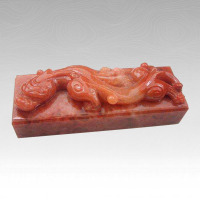 红花石,又称花红石,产于山东省平邑县东部的龙顶山、大笋山和东南部的箕子山一带。该石属泥灰岩类,与青州、临朐一带的红丝石类似。石质坚韧细腻,摩氏硬度3~5左右;颜色多变,纹理清晰,石体多以黄褐色为基调,上有深紫色的刷纹纹理,也有红底黄纹或黄底红纹等;脉络简洁,画面艳丽;不同色彩侧面磨光后呈现出不同图案,形成清晰明朗的精巧画面,似流云映彩、梅枝疏影、修竹摇曳,变化丰富。红花石红黄脉络相间,丝纹潦绕,除供观赏外,尚可制作砚台、镇纸等。红花石砚发墨润毫,手拭如膏。