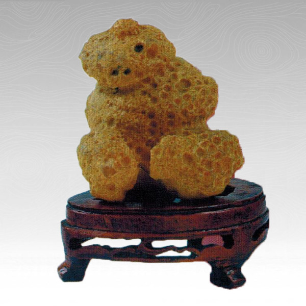 熊猫是国宝,当然这块石头也不是一般石质,它是玛瑙的,而且黄色。