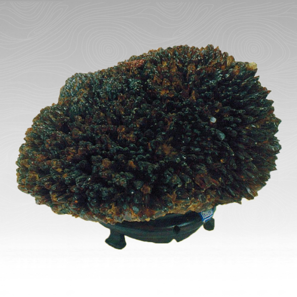 这是一方矿物晶体观赏石,其体为方解石集品,围绕一个基地放射状生长,又呈棕色,活像一只卧着的刺猎。