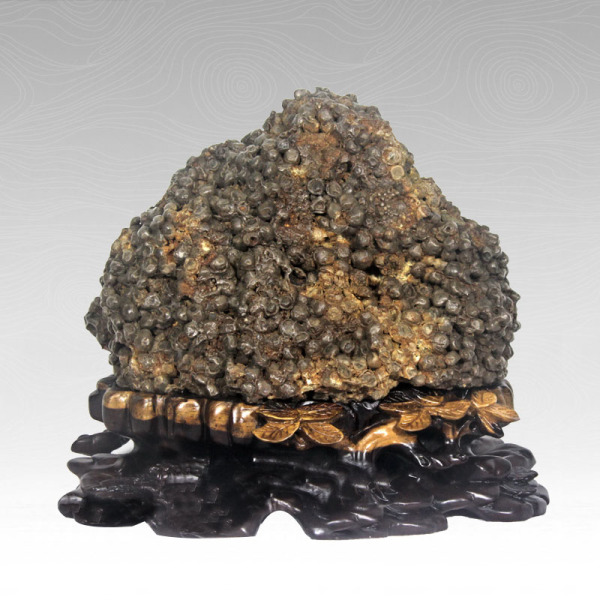 满足印象是来自内蒙古戈壁滩的石头。满足印象+1是其背面的影像。据此石的发现者说,可能是魚籽化石。因为发现处有一条巨大的魚化石。无论是这个故事有多么的虚假,事实是无论从哪个角度看,这块石头的外形和结构,甚至是其中的颗粒都非常像魚籽。只是没有地质学上的依据罢了。因为魚籽太难保存了,在自然环境和条件下,是非常容易腐败化水的。我看原始发现者的说法,仅仅只是为了卖个好价钱而已。由于这块石头的外形是堆积结构,像一盘丰盈的植物果实,因而从抽象的角度看,这就是份量《满足》的象征。