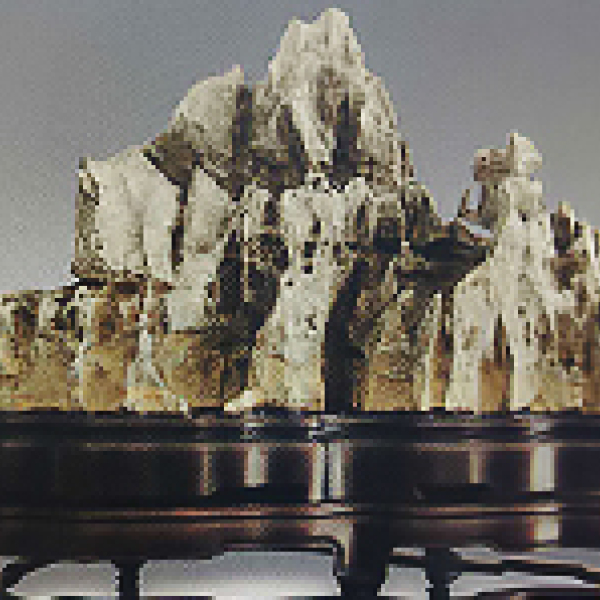 灵璧石作为文房赏石文化起于南唐。宋蔡京幼子蔡絛《铁围山丛谈》记载:“ 江南李氏后主宝- - .研山,径长尺输咫,前耸三十六峰,皆大如手指,左右引两阜坡陀,而中凿为研。及江南国破,研山因流转数士人家,为米元章所得。”元代名士揭俁斯亲见此研山,题诗曰:‘何年灵璧一 拳石,五十五峰不盈灵璧石的观赏形成规模,始于北宋。杜绾《云林石谱》三卷,灵璧石列于上卷首篇:“宿州灵璧石, 地名磬山。石产土中,岁久。穴深数丈,其质为灰泥溃满。...之,铿然有声。”