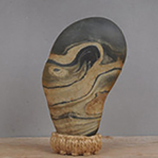 来宾卷纹石为多层硅质岩,由原岩体破碎脱落大河中,经过长期冲刷,形成各种立体纹理。由于岩体切面不同,纹理表现各异,常见纹理如风吹水波,泛起层层涟漪,线条流畅柔美。卷纹石质地坚硬,皮壳润泽,颜色多为灰色和黑灰色,非常珍贵。