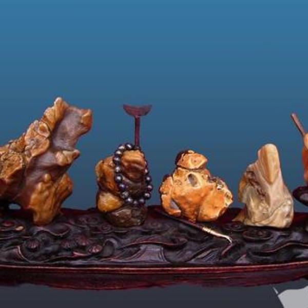 奇石底座除了托石和补缺外,还有一个重要的功能就是衬题——即更好地烘托、强化和展示奇石的主题。这本无可厚非,怎奈人们或为了彰显文化,或为了寓意吉祥,或为了与众不同,或为了追求☆,为奇石取的主题越来越复杂。而要衬托复杂的主题便需配之以能展示其主题内涵的底座。否则,就会担心观者不解其意。由此一来,底座便也随之复杂起来。