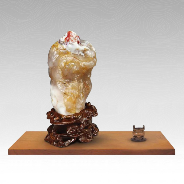 这“人物”在戈壁大滩上寂寞了不知多少万年,碰巧被爱石者收于囊中。审石度势之后,配以云纹镂雕木座,不但重现了这“人物”的炯炯神采,竟还多了一些仙灵之气。这爱石者姓吕,与八仙之一的吕洞宾同姓;且名坤炉,也是地灵之所,岂非天意?
