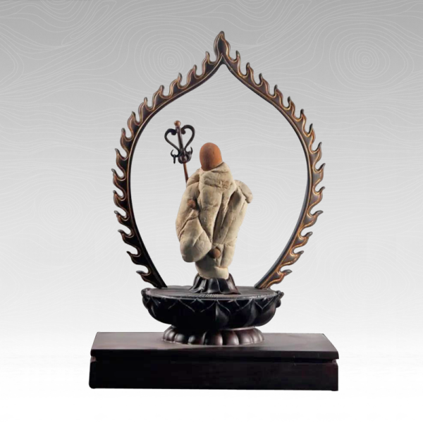 特点运用:藏家将此例观赏石作品命名为《地藏王菩萨》,据佛教典籍记载,地藏王菩萨“安忍不动,犹如大地,静虑深密,犹如秘藏”所以得名。本例作品中虽不见人物的面部表情,但其微微低垂的头部,端雅沉着的站姿,给人一种肃穆、慈爱的感觉,契合了地藏王菩萨的人物特点。