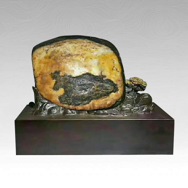 这是一方长江天然画面奇石,一头黑牛静卧其中,此牛大小比例协调,卧姿形神兼备憨态可掬,仿佛正在蓄势待发,给人一种沉稳,低调,大气之势。画面干净整洁对比度清晰四周均无多余杂乱之线条,极大的烘托出了中国“牛”之意境,催人奋进的思想主题。经石友点评发现石中卧牛与近代国画大师李可染的《耙草歇牛图》有异曲同工之妙,真乃是天工造物令人叹为观止,是一方不可多得极具收藏价值的☆美石!