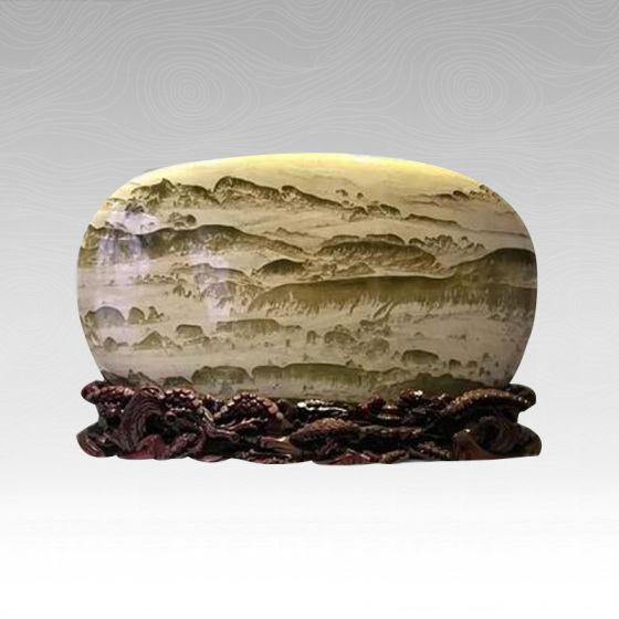 汉江水墨石,出自湖北省大荆山襄阳一带江流间的卵石滩。该石源于鄂西北山地,在漫长的自然作用下,岩石从小溪到大河,不断滚磨,形成光滑的卵石。汉江水墨石的地质构成简单明晰,石英质与石灰质互相渗透,白的泛青,黑的似墨,奇妙地变幻出浑然天成的图案。