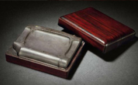 宋人高似孙在《砚笺》中记载砚的品类,有玉砚、银砚、铁砚、铜砚、漆砚、缸砚、古陶砚、古瓦砚、澄泥砚、水精(晶)砚,以及各种石砚共计65种,洋洋大观。至于形制,有随形,有方正,有圆润,有抄手,有箕形,有风字形,有宝瓶、葫芦等各种器物和植物形,有山水花鸟及各种意境形式,不一-而足。古人认为,赏石文化中古砚凡琢成之式,方角宜纯,圆体宜浑,刳处宜隐痕,起处宜无碍,开脸宜相质,留眼宜得位,池阔则底需空,边广则池需狭,务必置之几案而不厌,传之久远而弥贵。《兰亭序》的作者右军先生有《笔阵图》妙文:“ 纸者阵也,笔者刀矛