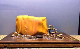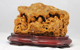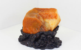 潮州蜡石的赏石文化特征:蜡石主要成分为石英,长期受黄泥土中酸性物质浸染,多呈黄色,所以称为黄蜡石。色泽蜡石的石英成分中,也常含有其他矿物成分,特别是表层,常会因各种矿物质附着呈现多样色彩,有黄、红、白、黑、花等色系。黄色系中又有金黄、橙黄、浅黄、棕黄等色。红色系中有猪肝红、枣红等色。白色系中有纯白、灰白等色。黑蜡石以乌黑为佳。花蜡石以色彩和谐为妙。质地蜡石的硬度为摩氏6.5~7.5,质地细腻光润。蜡石成分以石英为主,但由于其他成分组成不同,在鉴赏中分为冻蜡、胶蜡、晶蜡、细蜡、粗蜡等档次。冻蜡质地通透,光