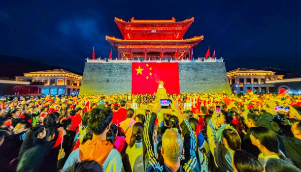 巨幅国旗打卡墙和“祖国陪我的多少天”、AI拍照表白祝福祖国等互动打卡装置激发游客爱国热情,吸引游客纷纷合影留念。富有浓郁陕北风情的陕北说书、陕北民歌,红☆景剧《黄河大合唱》《南泥湾大生产》以及国风串烧、古风巡游、红歌快闪、黑神话悟空角色巡游等上百场街区演艺,全天候轮番上演,为游客献上一场别开生面的红色国风文化视觉盛宴。