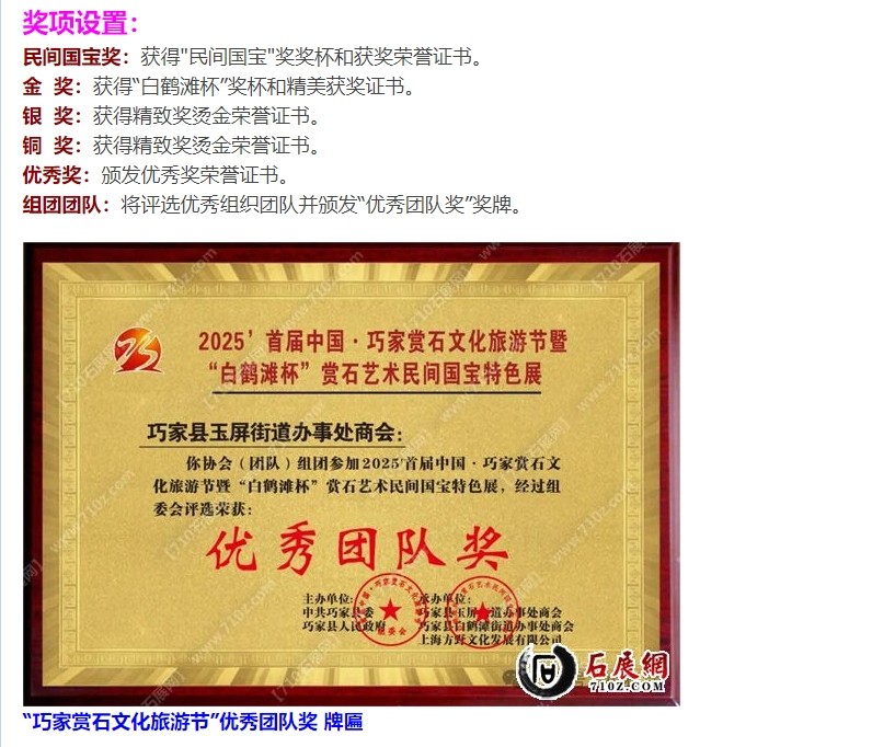 支持单位还有其他全国各地观赏石协会、奇石协会、盆景赏石协会;各地赏石团体、赏石联盟、收藏展馆等。